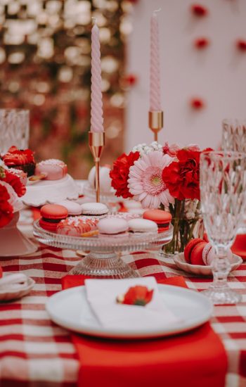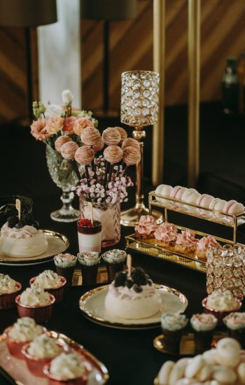- aranżacja stołów i przestrzeni – dbam o spójność stylistyczną i estetykę całego wydarzenia – kompozycje kwiatowe czy tematyczne akcenty – wszystko dopasowane do okazji i Twoich oczekiwań